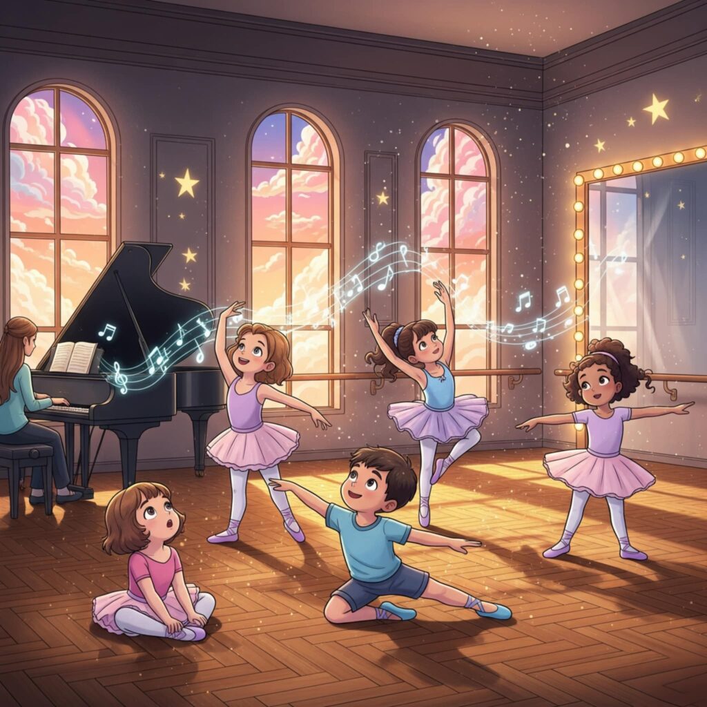Zapraszamy dzieci w wieku 4 – 7 lat do odkrywania tajemnic baletowych kroków, piruetów i figur. Młodzi tancerze rozwiną również grację, równowagę i nauczą się wyrażania siebie przez ruch. Zajęcia to połączenie muzyki, tańca i wesołej zabawy, które inspirują i dają pewność siebie w każdym kroku.