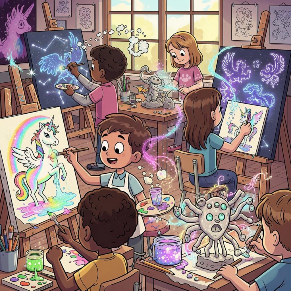 Dzieci zanurzą się w świecie barw, kształtów i wyobraźni. Będziemy tworzyć prace pełne kolorów, rozwijać kreatywność i odkrywać, że sztuka to niezwykła przygoda, w której każdy może zostać małym artystą.