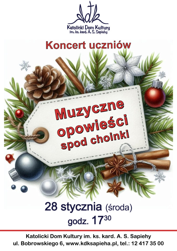 Koncert „Muzyczne opowieści spod choinki”16 stycznia, 2026 Poprzedni Wpis Koncert Zimowy studentów Akademii Muzycznej Następny Wpis Koncert Muzyczne maski od barku po musical