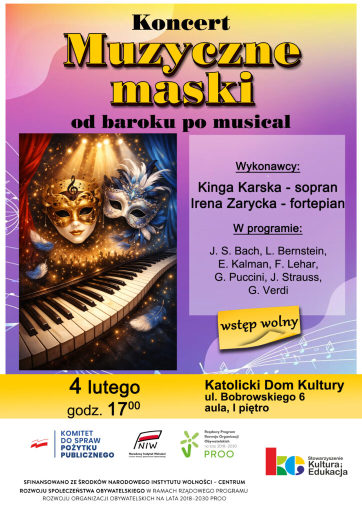 Koncert Muzyczne maski od barku po musical29 stycznia, 2026 Poprzedni Wpis Koncert "Muzyczne opowieści spod choinki" Następny Wpis Zajęcia na rok 2026
